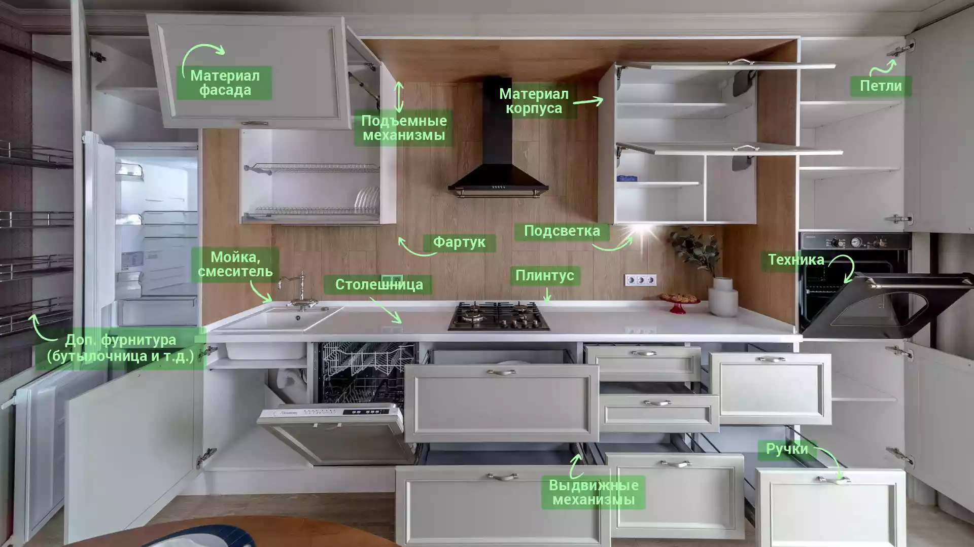 Доставим кухню в удобное для вас время, соберем и подключим технику. Доставка по Республике Татарстан и Российской Федерации.