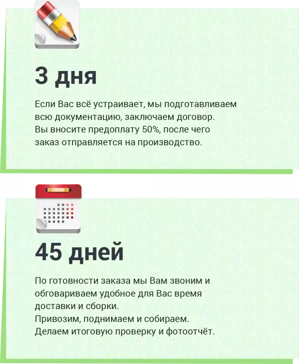 Соответствуем требованиям и стандартам качества. В течении всего срока действия гарантии мы бесплатно исправим заводской брак, который выявился в ходе эксплуатации.